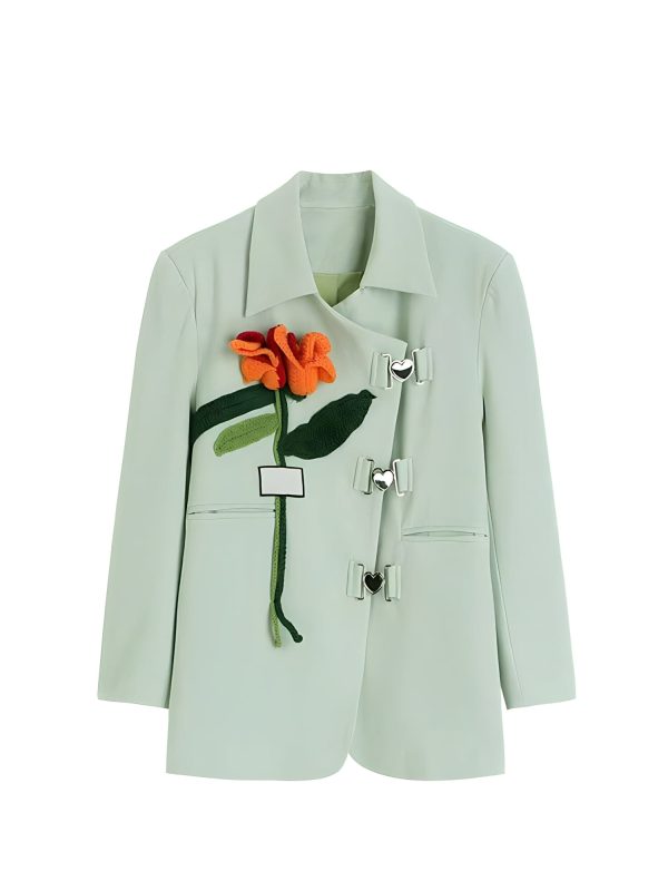 Explore your wild side with this exclusive piece crafted for superior comfort and styling. The long sleeve blazer features a luxurious hand-woven polyester-cotton fabric blend, turn down collar, large embroidered floral design and durable heavyweight construction throughout. Stay exotic.