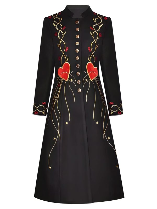 Fall in love with the detail and quality on this eye-catching overcoat, offering a unique blend of vintage high-street fashion and casual comfort. Features a luxurious cashmere fabric exterior, intricate floral pattern embroidery, and meticulously detailed construction throughout. This piece is guaranteed to turn heads wherever you go. Be exclusive.
