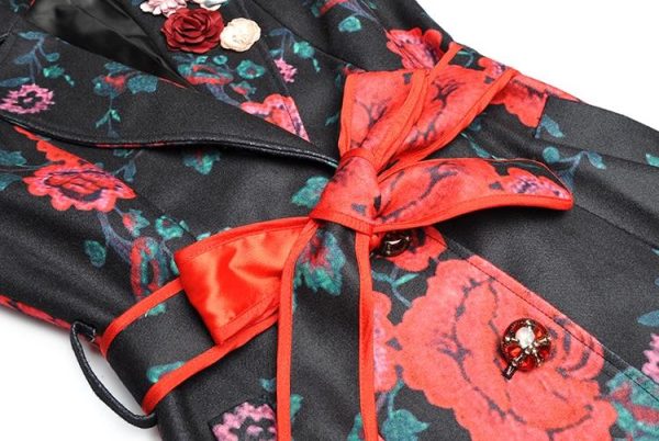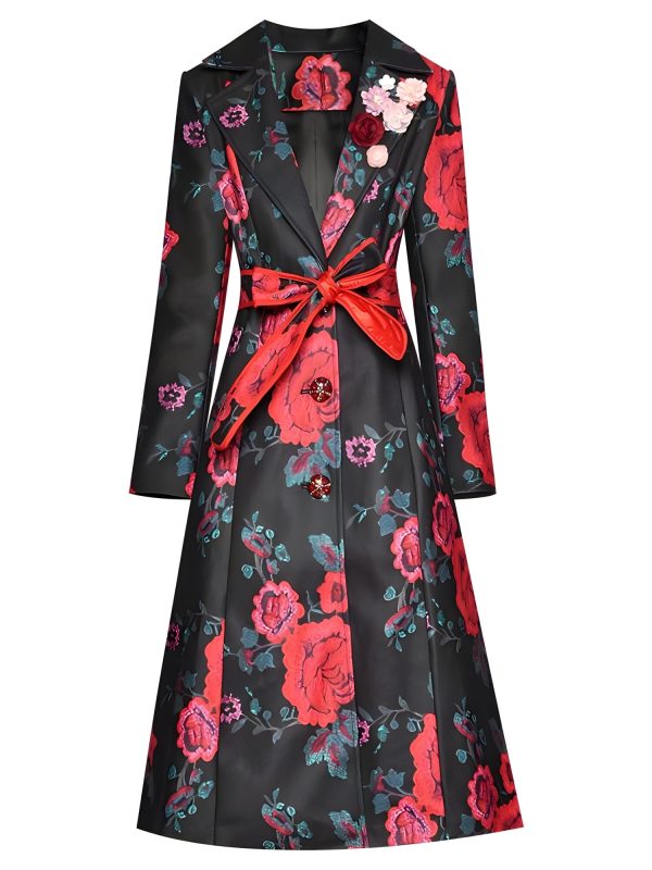 Turn heads on sight with this luxurious winter overcoat. The long sleeve winter coat offers a unique blend of vintage royalty with long-lasting comfort and style. Featuring a premium polyester-cotton fabric blend, intricate embroidered floral design, mid-drift sash, and detailed heavyweight construction throughout. Arrive in style this season.