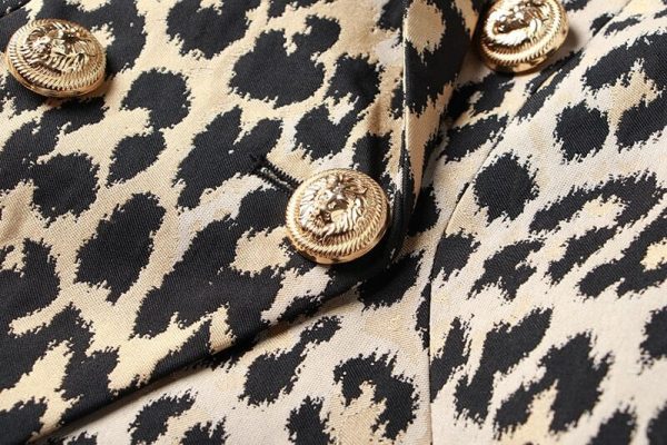 Explore your wild side with this exclusive piece that offers a unique blend of superior comfort and high-street fashion. The long sleeve blazer features a luxurious hand woven polyester-cotton fabric blend, turn down lapel, leopard pattern print styling and durable heavyweight construction throughout. Stay exotic.